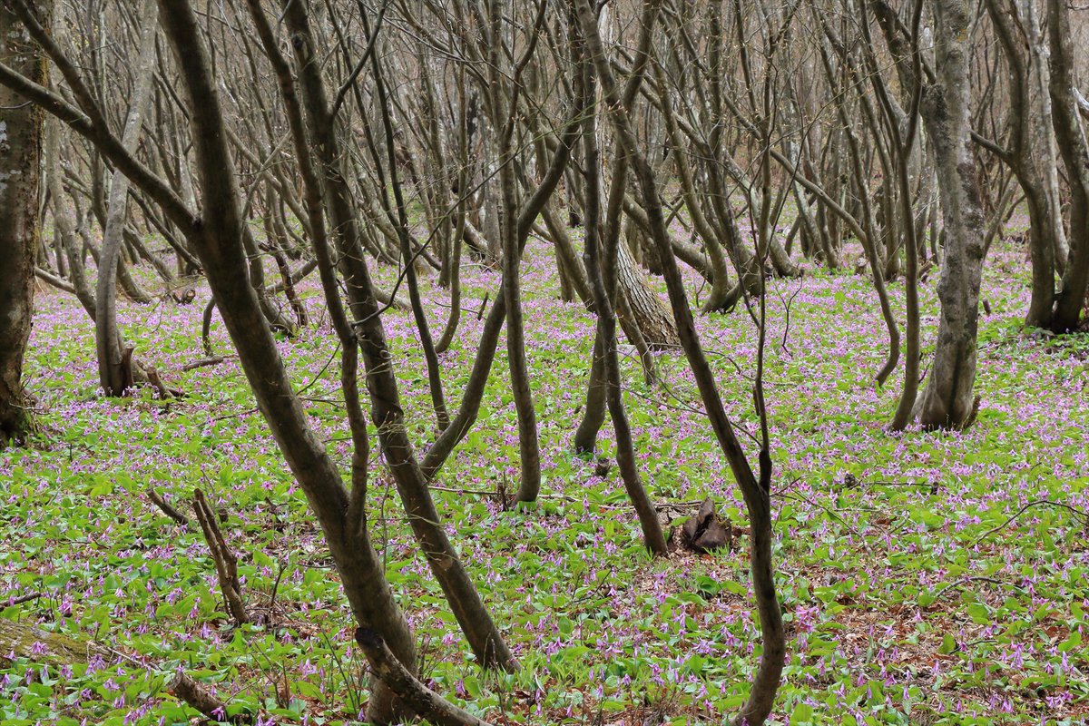 オンソリ山はカタクリ天国 ブナの中庭で