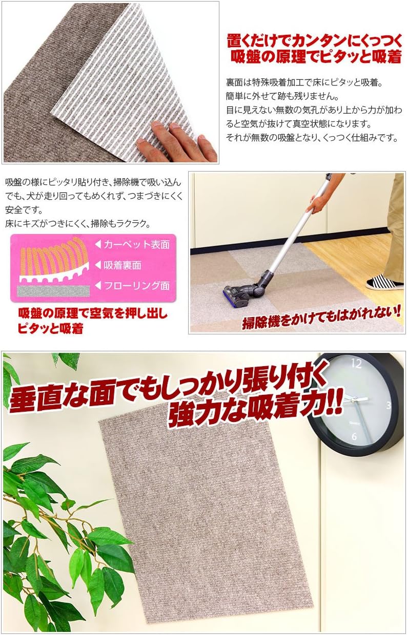 Amazon 山五 滑り止め 吸着加工 洗えるカーペット 薄手 大判タイプ ベージュ色 10枚入り 50 50cm パンチ タイルカーペット オンライン通販
