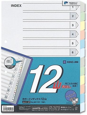 Amazon キングジム カラーインデックスa4 12山タイプ 907 12y 文房具 オフィス用品 文房具 オフィス用品