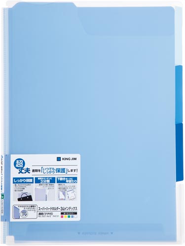 キングジム スーパーハードホルダー 3山透明 マチ付 青 765tアオ カウネット