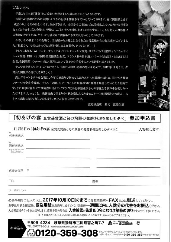 イベントのご案内です 飛騨のにごり酒なら渡辺酒造店 渡辺酒造店長ブログ 日本で一番笑顔あふれる蔵 蓬莱 渡辺酒造店