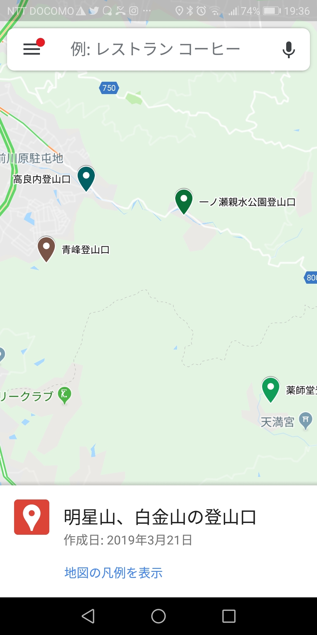 グーグルマップに山を登録