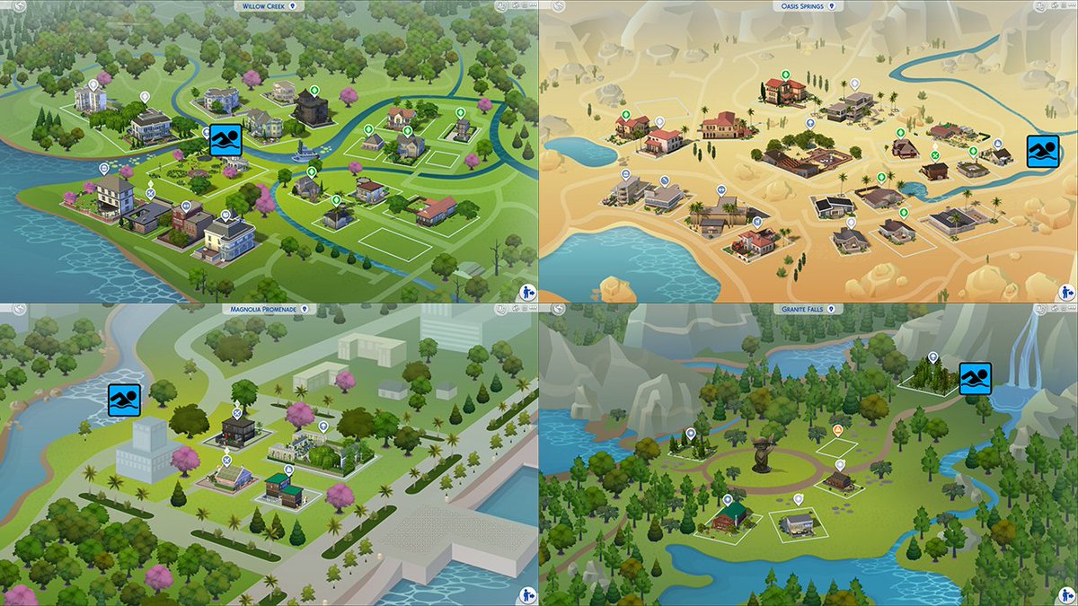 Kijiko On Twitter シムズ4 入水自殺マップ ではありませぬ アプデで水辺に入れるようになったと聞いて水着で全マップをウロウロしてきました 確認できた入れる場所 水に親しむコマンドが出る所 はwillow Creek Oasis Springs Magnolia Promenade Granite Falls